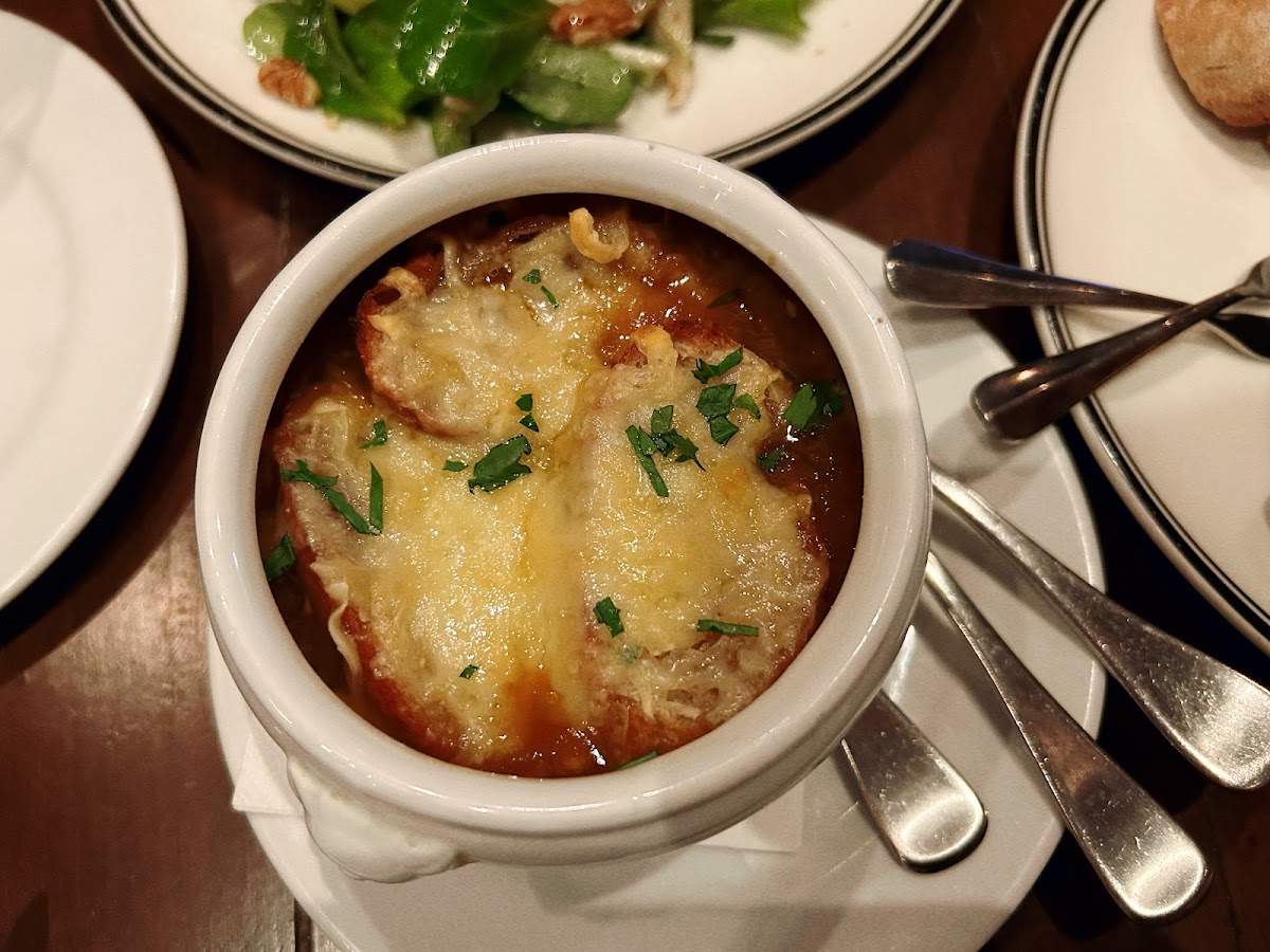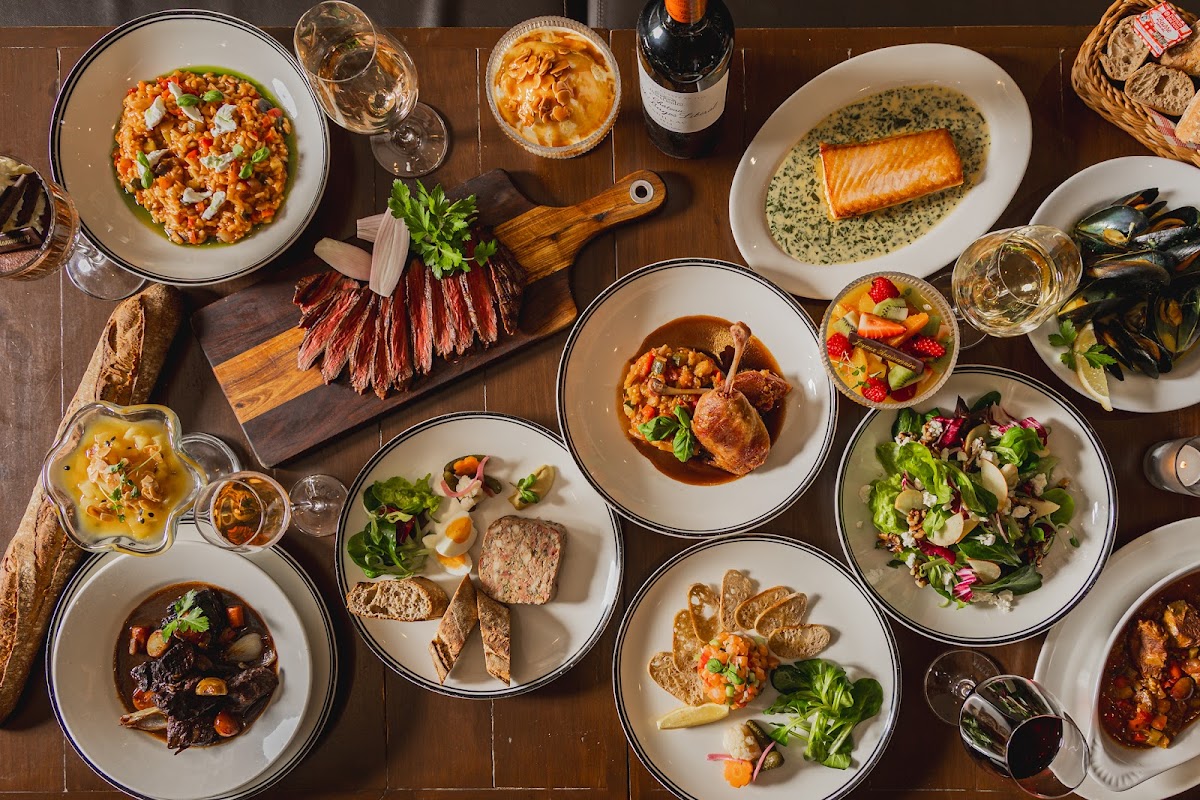 A standout dish is the signature French onion soup, a rich, comforting starter that perfectly sets the tone for the meal ahead. Paired with freshly baked bread and melted Gruyère cheese, it's a perfect blend of textures and flavors. For those craving something heartier, the steak frites is a must-try. The perfectly seared steak, served with crispy fries and a rich sauce béarnaise, is an unforgettable experience for steak lovers.